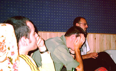 | Que dire de plus, apparement ça bosse, le patron Mamad est aux commandes, et moi, tel René face à Celine, je contrôle le bon déroulement du talent en pleine action de l'un de mes collègues enfermé dans le bocal. |