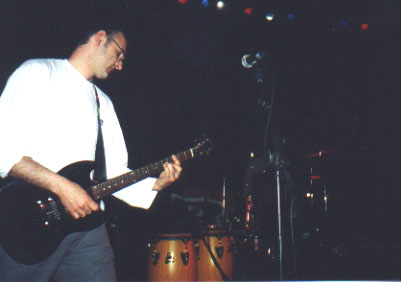 Un problème technique peut éventuellement expliquer que c'est la seule photo de notre guitare-hero, là-bas dans le noir. |